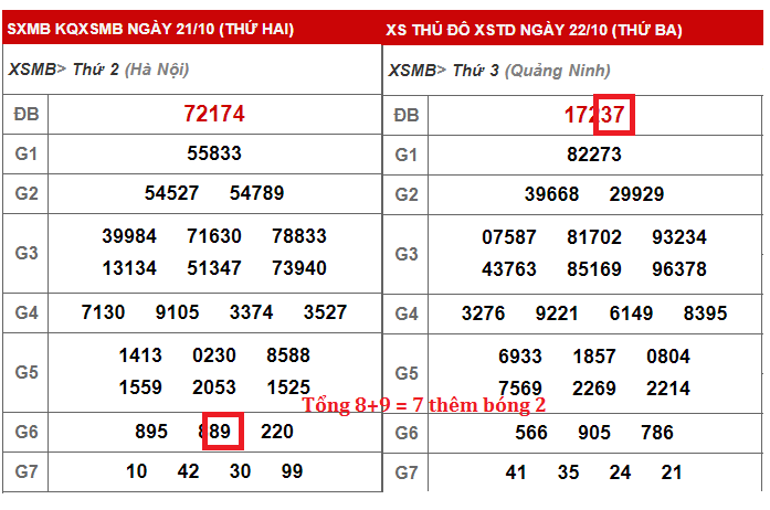 2 số cuối cùng của giải G6.2 – Lấy tổng 2 số cuối thêm bóng của nó làm chạm đề